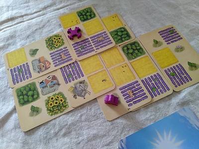 毎ラウンド、各プレイヤーが自身の前に1枚ずつプロヴァンスの景色が描かれたカードを置いていきます。