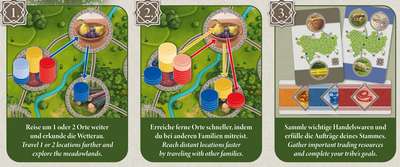 駒の移動によってカードによる条件達成を目指す。手番では駒を動かすだけなのでアクションそのものは非常にシンプル。しかし相手の駒の移動に便乗して自分の駒を動かせるのが他に類を見ない面白さがある。セルティック地方を象徴するようなボード上の彩り豊かなアイコンに到達すれば得点カードを公開して得点。シンプルながら移動と得点様式だけでかなりシャープな仕上がり。面白いです。