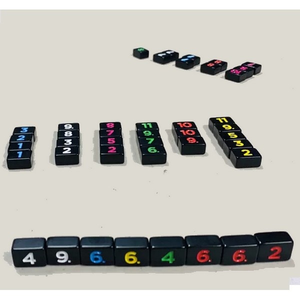 このゲームは132枚のタイル、具体的には6色のタイルの1から11の各2枚ずつあります。