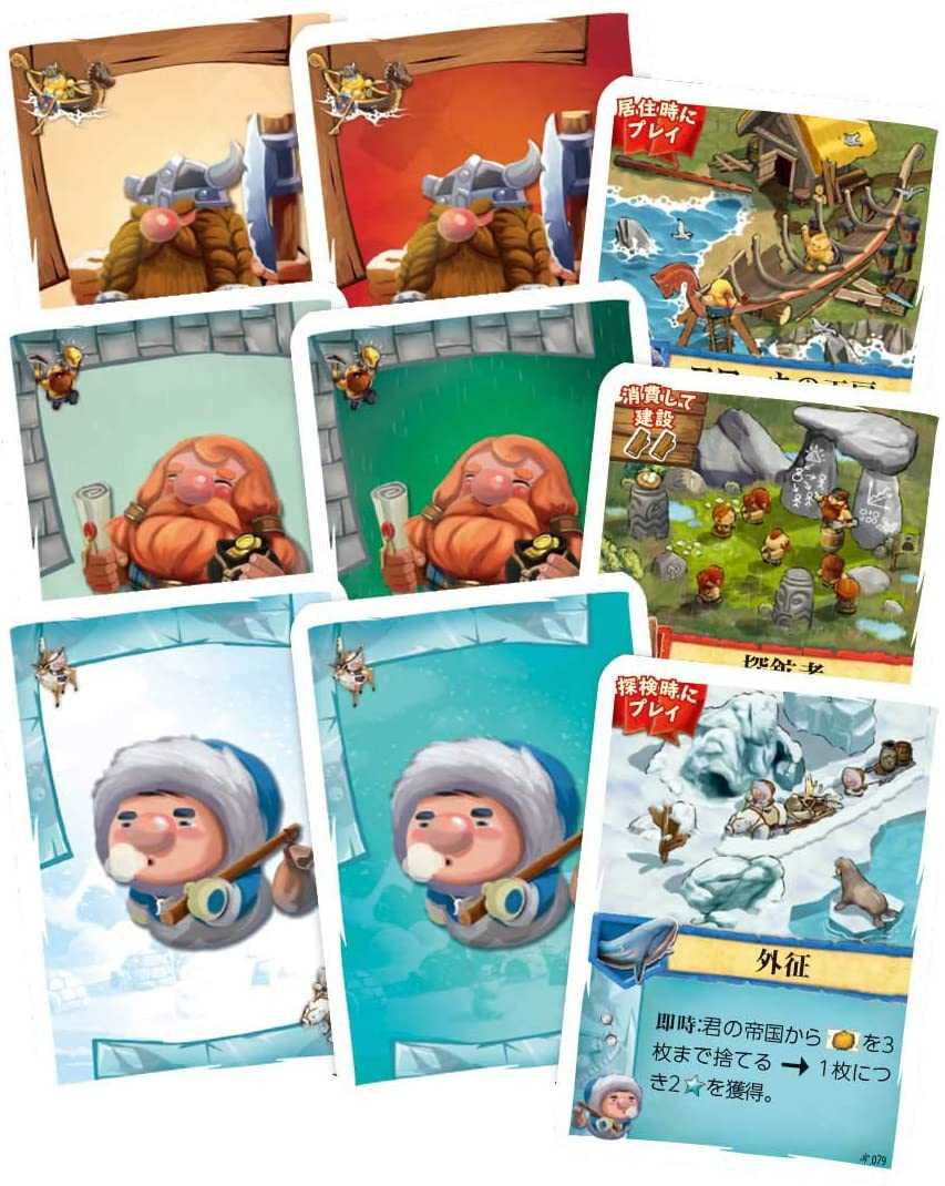 「エンパイア・オブ・ザ・ノース」は、各所属ごとに異なるデッキを用いた文明成長のゲームです。