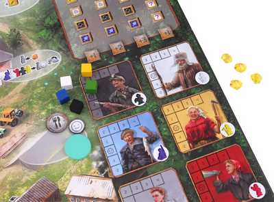 これを6人すべての労働者が移動したらそのフェイズが終了し、フェイズマーカーを進め、労働者を準備状態にします。朝に宿舎にいたら幸福度が1上がります。
