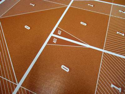 このゲームはおはじきで行うテニスゲームです。ボードはテニスコートを表し、プレイヤーはボールのコマを持ってプレイします。
