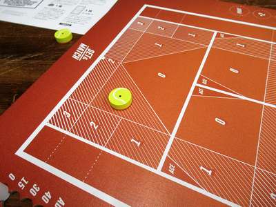 「セット&マッチ」は、コートを模したボード上でおはじきで行うテニスのアクションゲームです。
