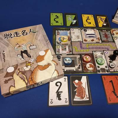 「脱走名人」は、同時にセットする数字カードで進むすごろく×連鎖するババ抜きのドキドキ感が盛り上がるゲームです。