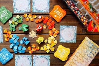 「ホリ」では、プレイヤーが集まって色とりどりの粉を散りばめ、踊りながら新たな門出を祝い、冬の終わりを祝うボードゲームです。