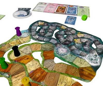どのカードを失うかが決まったら、残りのカードの価値を合計して、スペース75にある「知恵の雲城」に到達したプレイヤーの勝ちです。