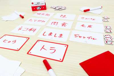 毎ラウンド、全員で相談した上で、「探りを入れるための関連語」を1人1つずつ決め、白紙の手掛かりカードに書き込んで陳列させます。