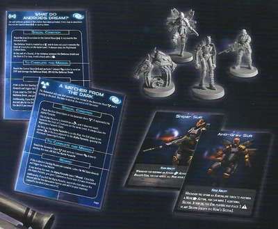 『アローン:アルファ・エクスパンション』では、新たに戦闘装備≪スナイパー・スーツ≫を着装したキャラクターと移動装備≪反重力スーツ≫を着装したキャラクター・カードと対応するミニチュアが加わり、キャラクター選択の幅が広がることになる。
