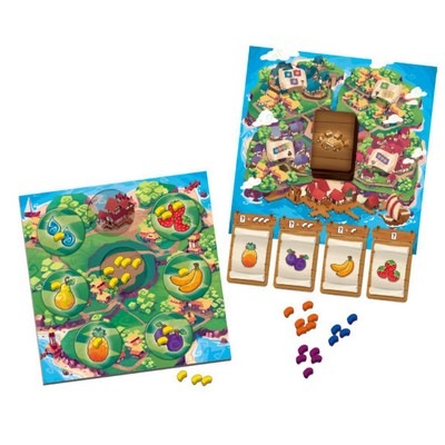このゲームはトークンを移動させつつコストをため、市場からカードを仕入れ、誰かのカードの果物が特定の枚数や組み合わせになったらゲーム終了となります。