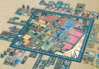 各プレイヤーはランダムでキャラクターカードを受け取り、初期の自分の区画に配置し、指定された区画に初期配置ビルを置きます。