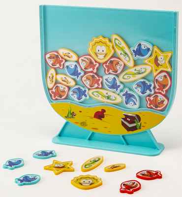 手番では、自分の魚を1匹選び、水槽の中に物理的に落とします。
