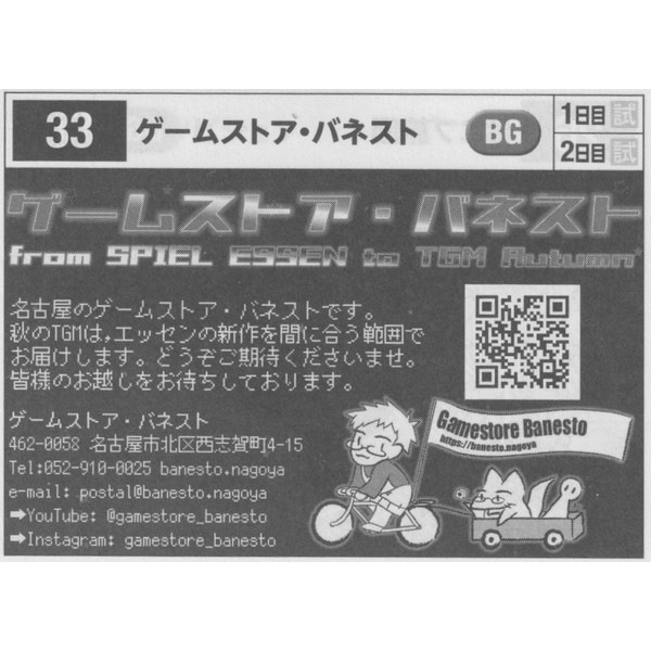ゲームストア・バネストは、ゲームマーケット幕張2025年秋は、「エリア33」にて出展いたします。