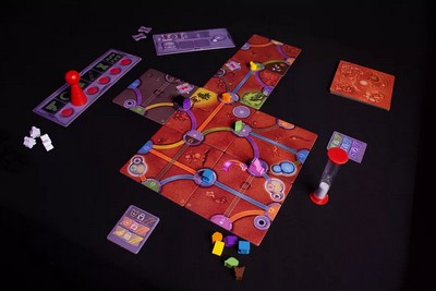 ・資源の移動:プレイヤーは、自分のアクションタイルにある色の道路に沿って資源を移動することができます。道路に沿って資源を移動することができます。資源は駅から駅へと移動しますが、各駅には1つの資源しか置くことができず、他の資源を置いている駅を通過することはできません。