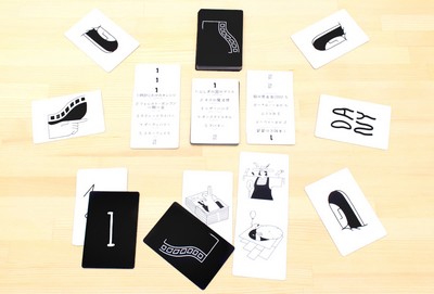 各プレイヤーは交代で抽象記憶像カードを何枚か自由に組み合わせてお題を当ててもらいます。