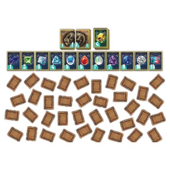 ゲームが終了したら、各自は自分の獲得した宝石カード、化石カード、金塊カードの得点を合計します。