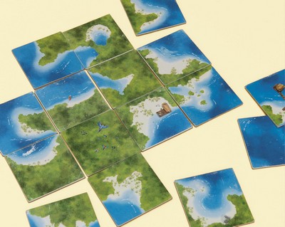 2人プレイでは、交互にこの島のタイルを配置し、相手を困らせながら自分のタイルをすべて並べることができたプレイヤーの勝ちです。