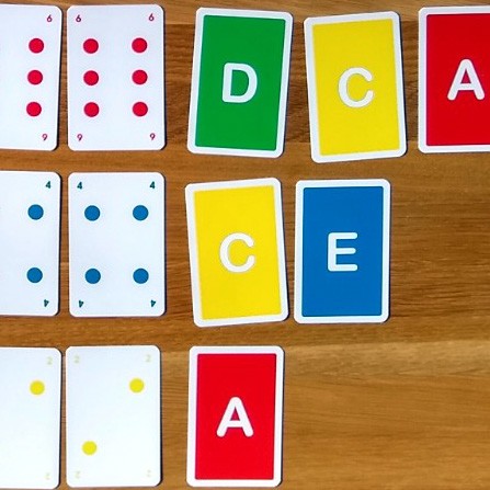点数の少ないカードは、点数の多いカードよりも出現率が高く、すべての色が同じ点数になるようになっています。