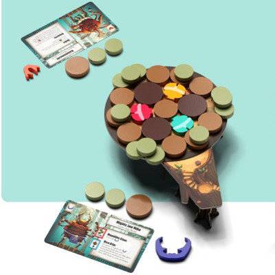 「甲虫相撲」は、自分の甲虫を押し出されないように、ディスクを差し込んでいく、甲虫の世界の相撲をテーマにしたアクションゲームです。