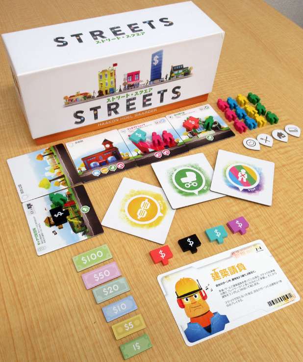 それぞれの建物には簡単な評価式があり、ストリートが得点されるとオーナーにお金が入ります。