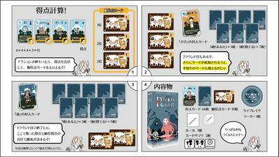 1枚ずつ配られる村人カードを「取る」か「時計回りに次のプレイヤーに押し付けるか」して、得点の高い村人を集めます。