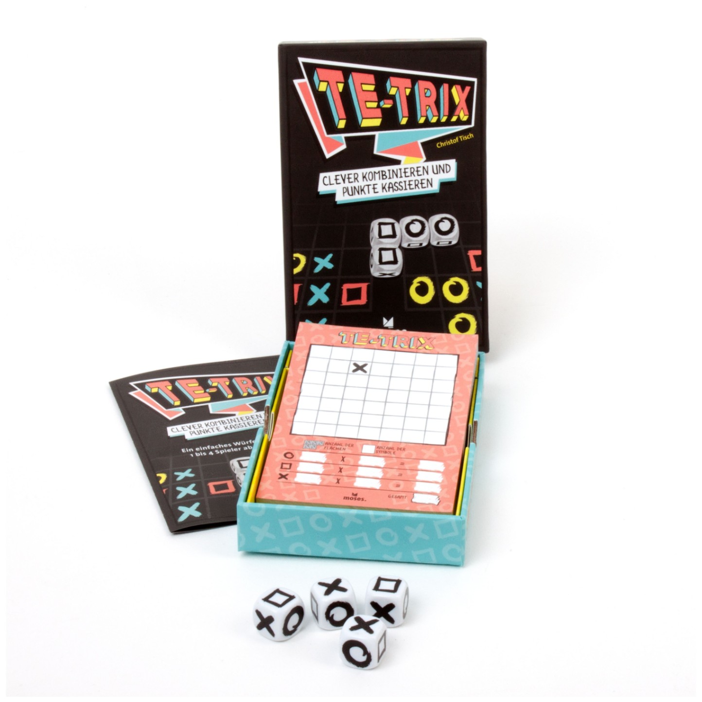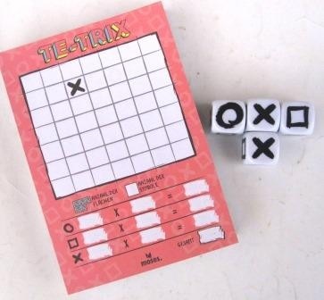 「テ・トリックス」このゲームは、ダイスにおけるビンゴと、うまくシンボルを枠の中に入るかの要素を併せ持ったゲームです。