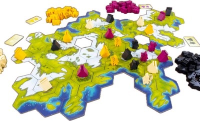 地形タイルに置かれた土地コマの数を数え、1つにつき1点を獲得し、点数の高いプレイヤーがゲームに勝ちます。