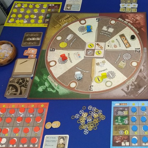 「ウォッチ」は、秘密の時計工場を舞台に、政府の贈収賄についての証拠を暴く、スパイスリラーテイストのワーカープレイスメントゲームです。