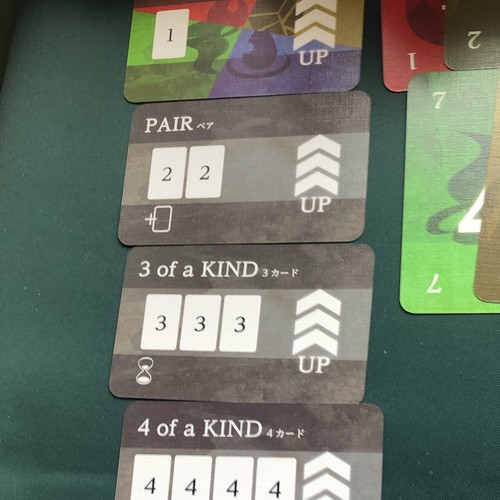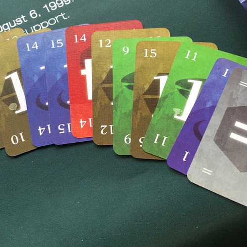 In this game, each player is dealt a set number of 64 spell cards, consisting of four colors 1-15 and four special = cards.