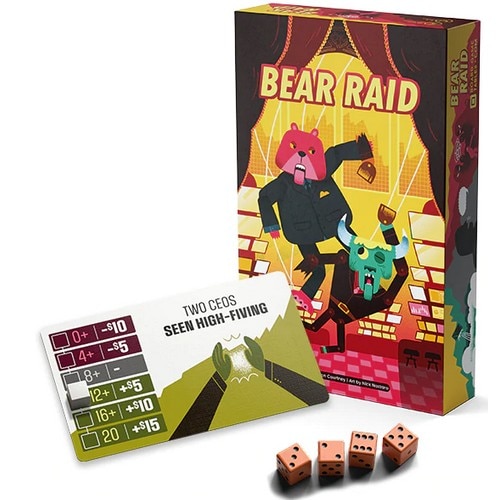 「ベアレイド」は、株式市場に影響を与え、大儲けを狙う、ダイスを用いた株式取引のゲームです。