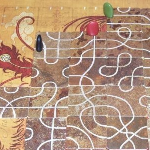 ゲームは、ねじれた線が描かれたタイル、これらのタイルを敷くための6x6のグリッド、各プレイヤーのためのトークンから構成されています。また各プレイヤーはタイルの手札を持っています。