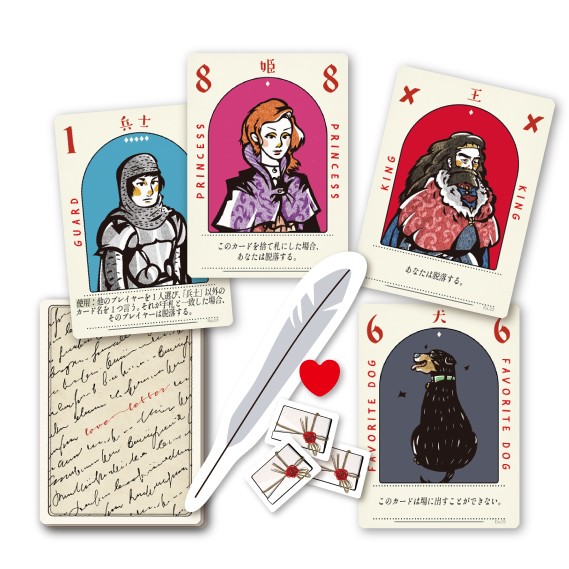 「ラブレター」は、カードの能力に翻弄されながら、勝利条件を目指すゲームです。新版になり、追加のカードが増えました。