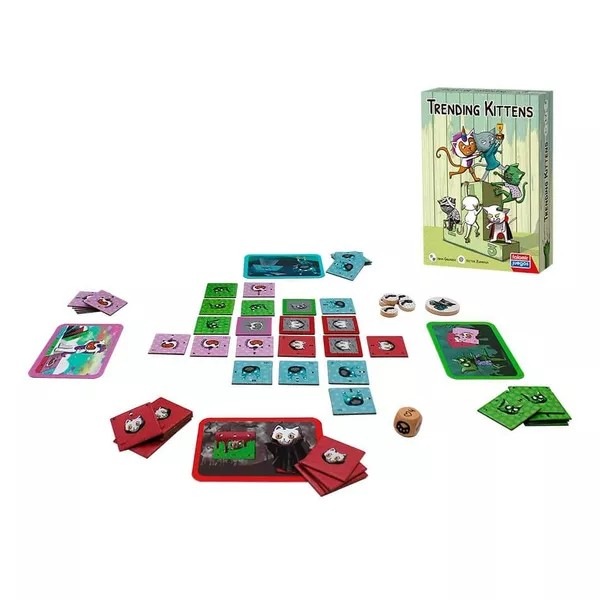 「トレンディングキティズ」は、ネコを変身させてトップキャットを目指す、空間視と変化への適応のタイル配置系のボードゲームです。