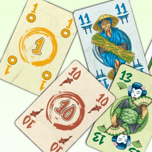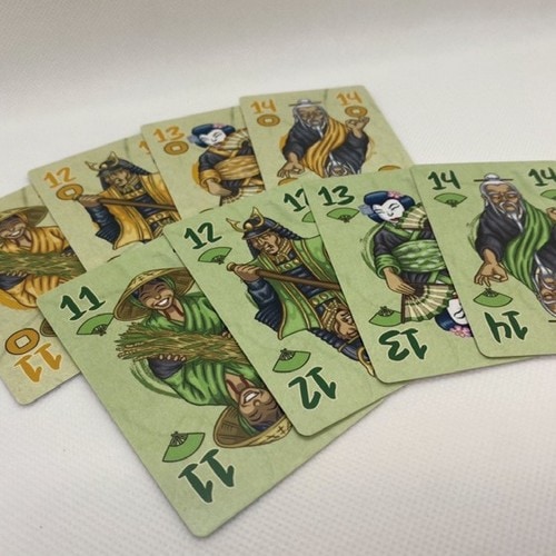 このゲームは2つの山札で構成されています。1から15までの4つのスートで構成された60枚の山札と、60枚のルールカードで構成された山札です。