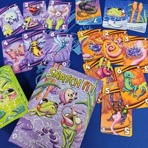 「スナッチイット」は、カエルとなって、カード数字をコントロールしながら餌にしていく、手札と場札を管理するカードゲームです。