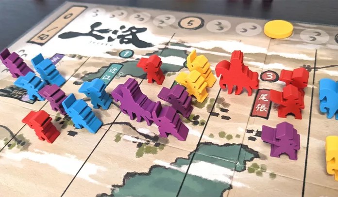 「上洛」は、戦国時代をテーマにした、トリックテイキングを用いた陣取りの要素を持つゲームです。