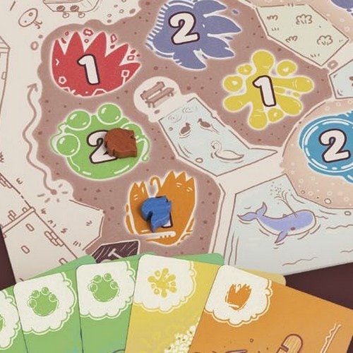 脱出ゾーンの6つのマスのいずれかに動物トークンが置かれ、全員が公開したカードの中に指定された色のカードが必要枚数あれば脱出に成功し、即座にゲームに勝利します。