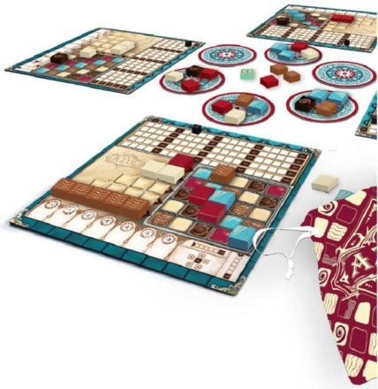 「アズール・マスターショコラティエ」は、チョコレート職人となり、テーブル中央のいずれかの工場にある、同色のチョコレートタイルすべてを取り、自分のボードの図案ライン上のいずれかに配置します。