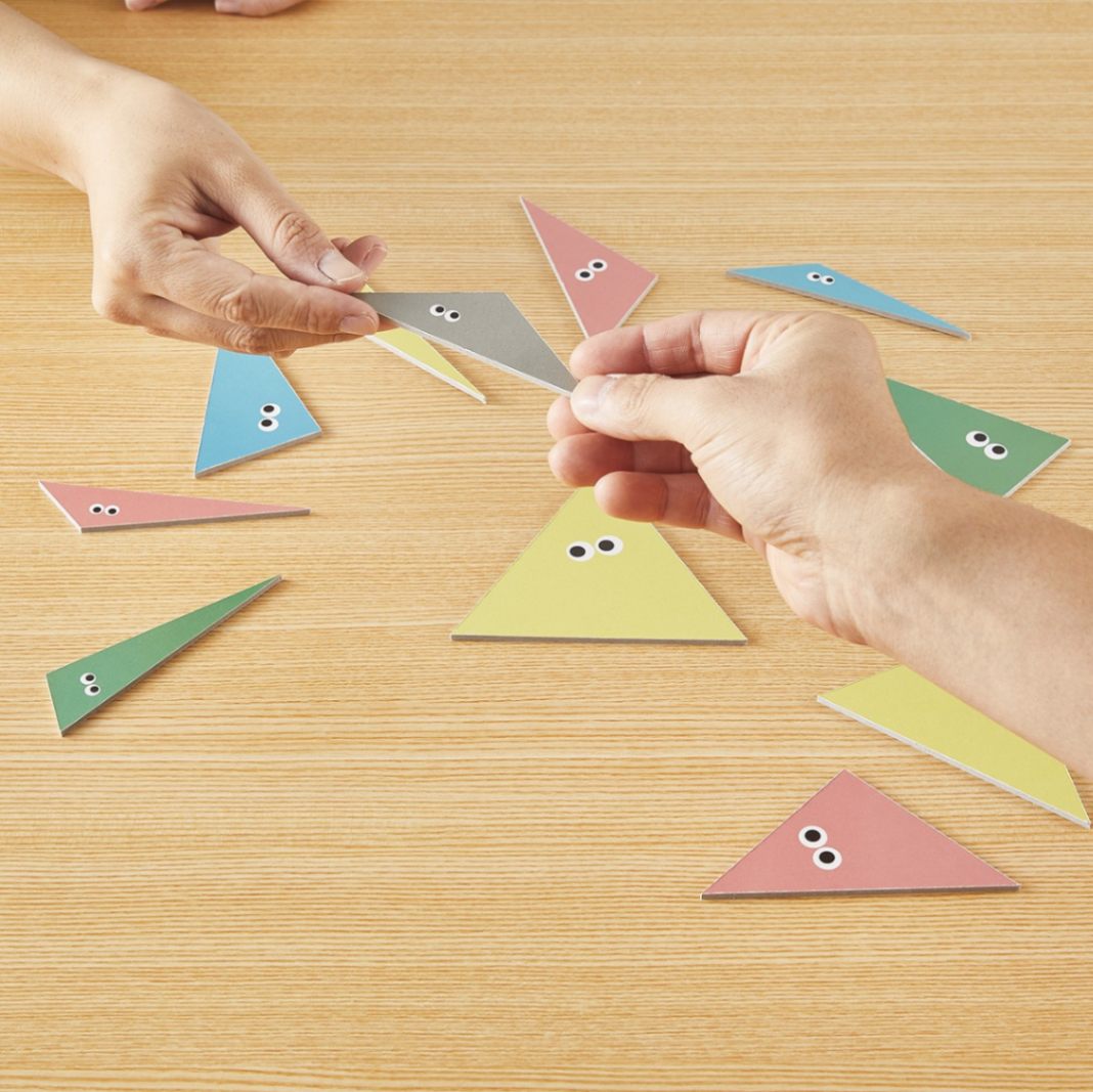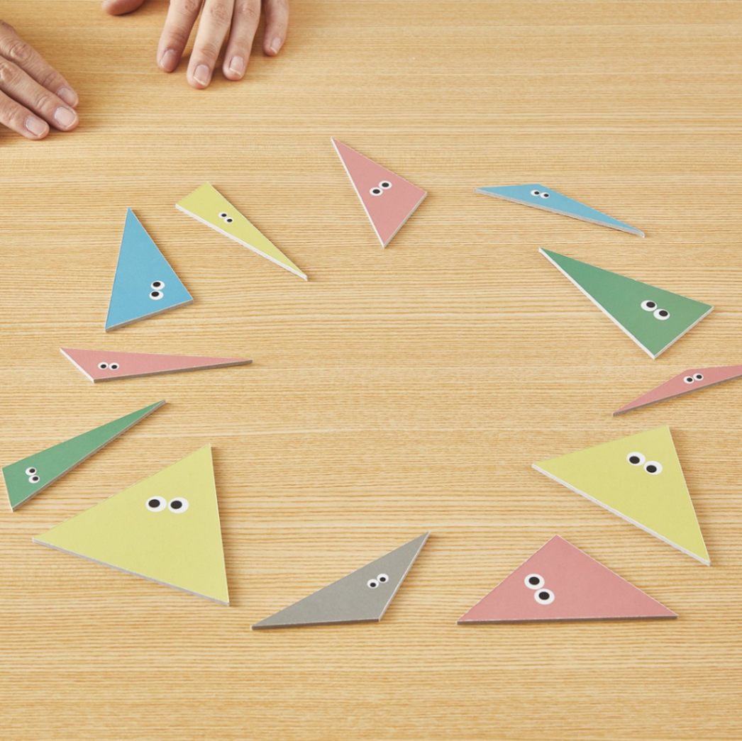 このゲームは、色んな角度の三角形を合わせて 360度を作り上げます。観察力と戦略が求められる対戦型ゲームです。どの角度を合わせるかじっくり見極めながら、相手に360°を作られないように選ぶ三角形も注意しましょう。