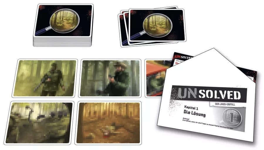 狩猟事故において、プレイヤーは絵札を見て事件を解決していきます。