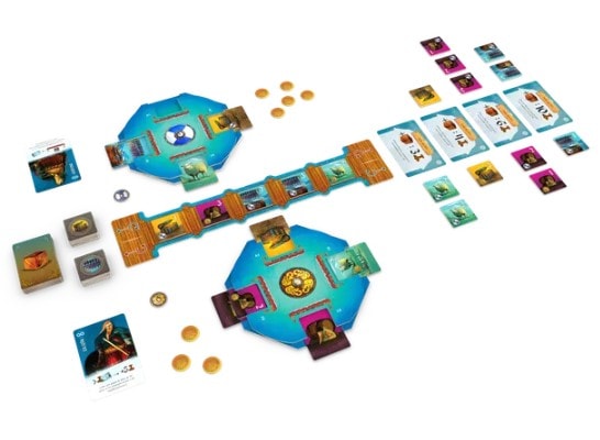 ロフォーテンは、革新的なカード手札管理と回転するボードが特徴の2人用ゲームです。