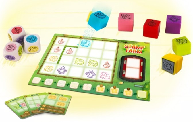 「スタンプファーム」は、農場を動物たちのスタンプでいっぱいにする、ロール&ライト系のゲームです。