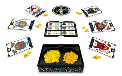 各プレイヤーは6コインを持ち、使用する指定されたキャラクターカードを選び、よく切って各プレイヤーに配ります。残りのコインは銀行に置きます。
