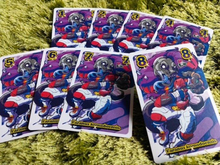 「サヴェッジボウル」は、爬虫類界の人気スポーツをテーマにしたトリックテイキングゲームです。
