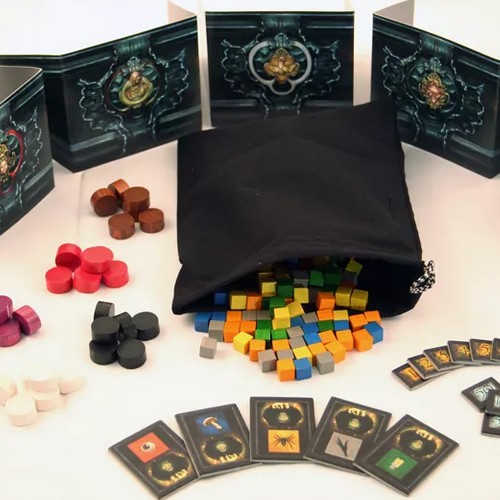 神託の袋の中に、決められた数の材料コマをいれ、準備します。