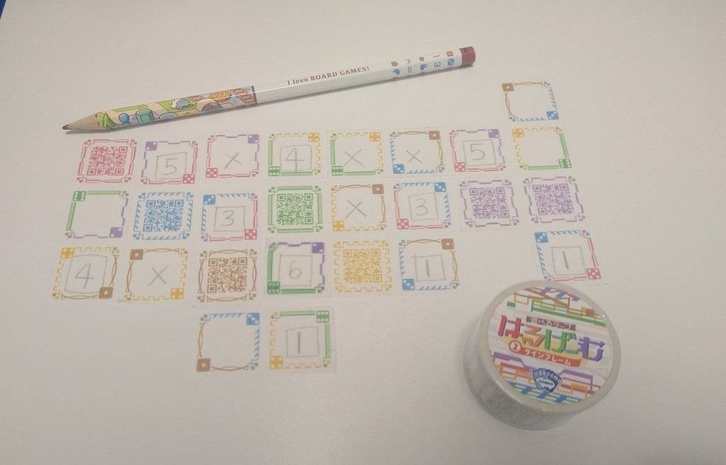 切り取ったテープをQRコードに隣接するよう貼り、さらに出目と同じ数字を書き込みます。
