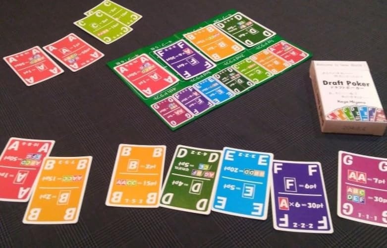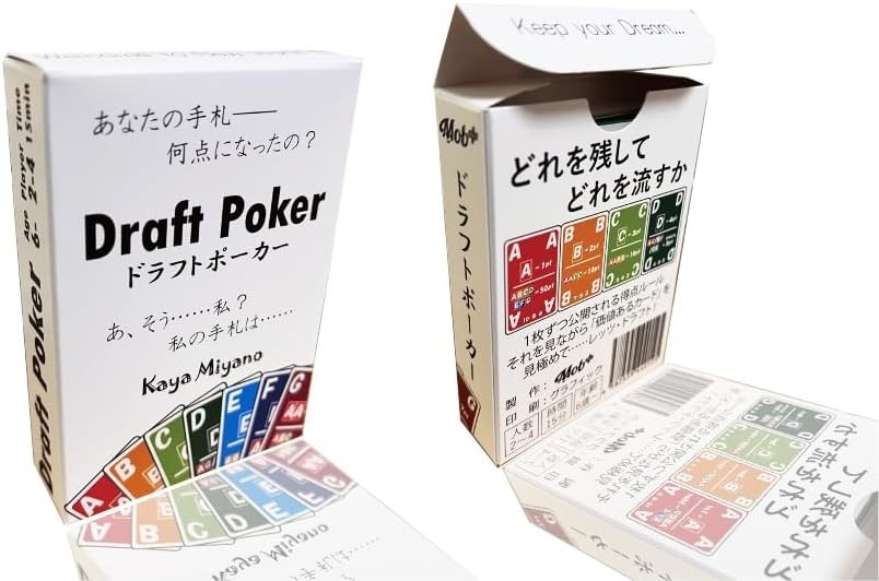 このゲームは、カードを取捨選択するドラフトと、カードの組み合わせで役になるポーカーを合体させたカードゲームです。