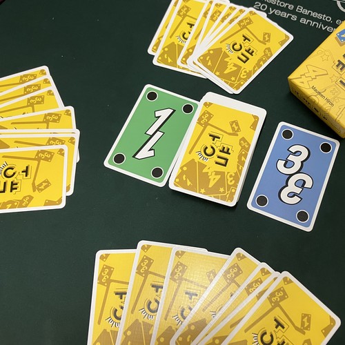 手番では、3つの要素のうち2つが一致すれば、カードを一番上に出すことができます。