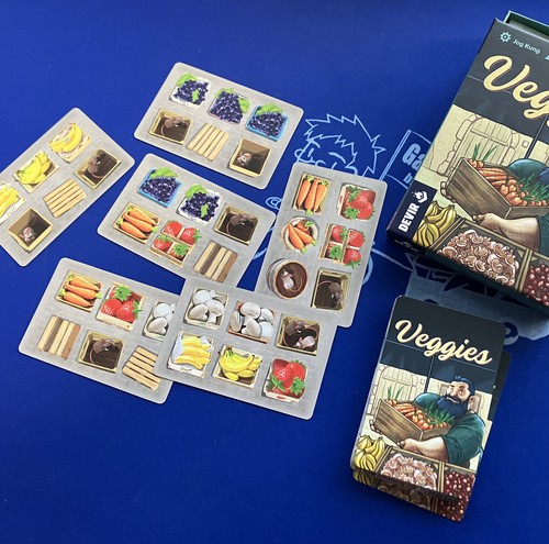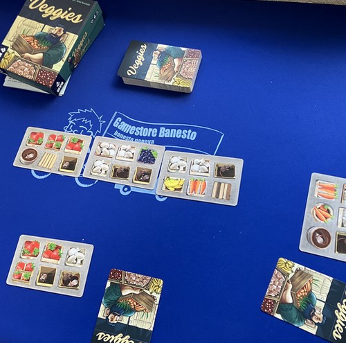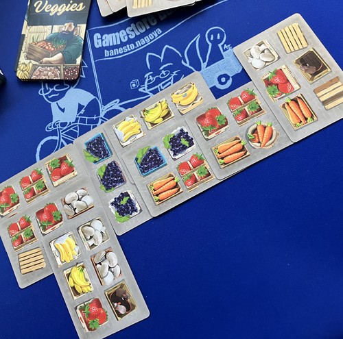 「ベジーズ」は、新鮮な果物と野菜を並べ、即売所を形成し売りさばくことを狙う、カードを重ねていくカードゲームです。