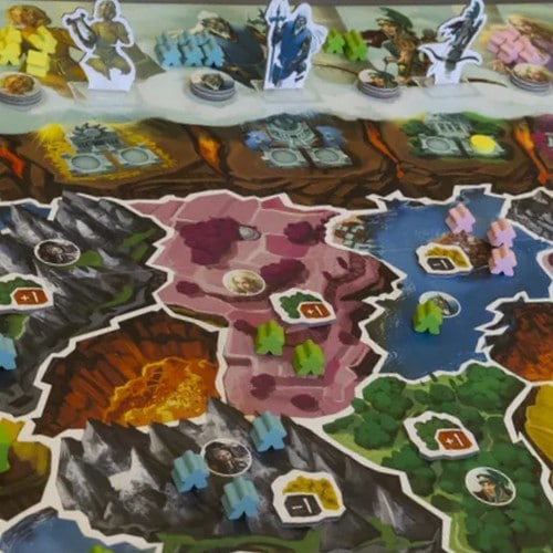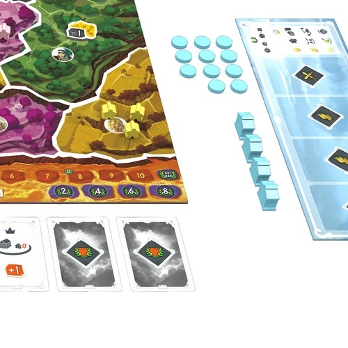 得点:訪問した神々と一致する地域のどの領地を支配しているかに応じ勝利トラックを進め、すべてのアクションスペースをクリアし、神々のスペースから自分のトークンを取り除きます。特別な目標より、領土の得点が変化します。
