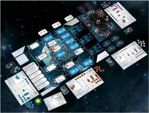 内容は複数の拡張からなり、基本ゲーム拡張による「新技術カード」、「新星系カード」、「新勢力ボード」、「差し替え用技術カード」や追加のゲーム用具を加えます。